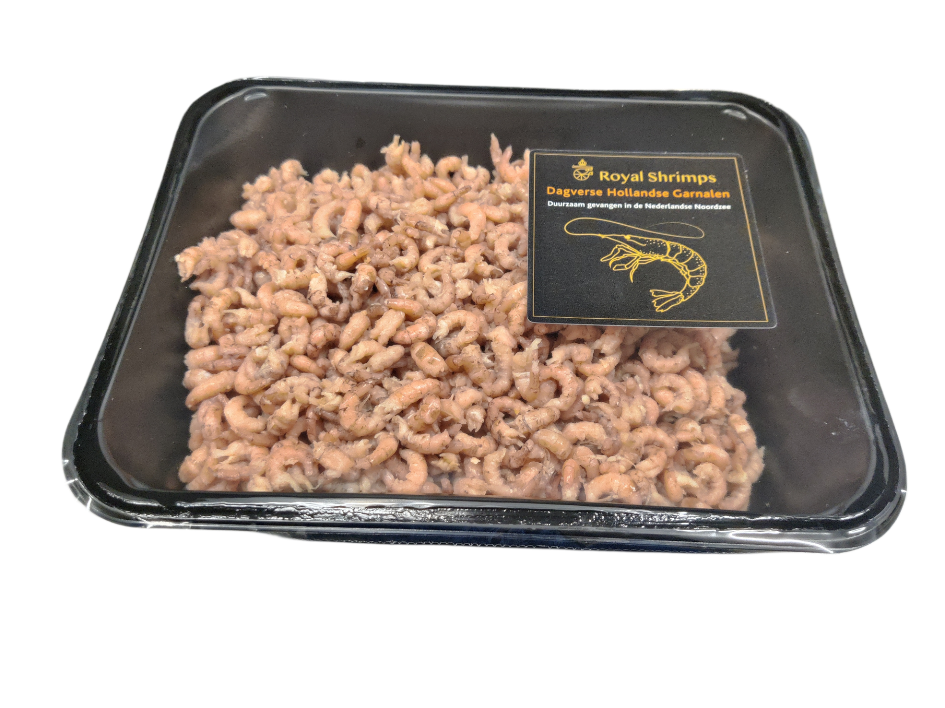 Crangon crangon. Onze garnalen worden dagelijks gevangen door de WR 143, gekookt aan boord, daarna verwerkt, gepeld en verpakt. Onze grijze garnalen zijn altijd van de beste kwaliteit, lekker van smaak en stevig. Voor prijzen email naar info@goudmerk.be